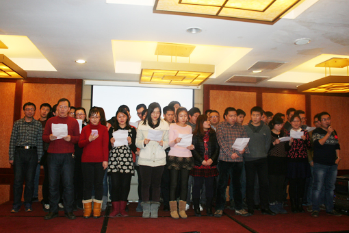 首先——公司年會總結(jié)大會暨優(yōu)秀員工頒獎(jiǎng)。大會由公司董事長王冠男致辭,總結(jié)過去一年的收獲與不足,展望未來的發(fā)展與方向。2014年公司組建了高層團(tuán)隊(duì),研發(fā)為公司發(fā)展打下堅(jiān)實(shí)的技術(shù)基礎(chǔ),推出了教務(wù)“小蜜蜂”APP應(yīng)用;但是凝聚力、采購成本、質(zhì)量控制還需加強(qiáng),技術(shù)研發(fā)和產(chǎn)品研發(fā)要以“用戶價(jià)值”為導(dǎo)向。公司致力于提供企業(yè)一卡通、校園一卡通解決方案和終端產(chǎn)品,并立足這個(gè)領(lǐng)域,打造威爾品牌。