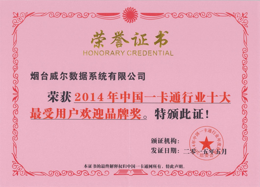 由中國一卡通網(wǎng)主辦的“2014(第五屆)中國一卡通行業(yè)年度評選”活動結(jié)果正式揭曉。山東威爾數(shù)據(jù)股份有限公司在此次評選中脫穎而出,憑借雄厚的實力和較旺的人氣榮獲“2014年中國一卡通行業(yè)十大企業(yè)一卡通獎”和“2014年中國一卡通行業(yè)十大最受用戶歡迎品牌”兩項大獎。
