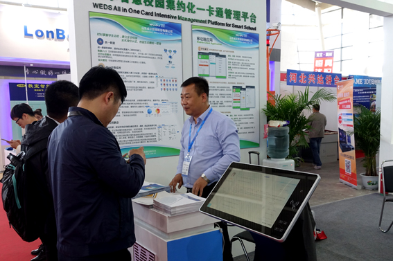 威爾公司的展臺位于場館的4號館,本次重點展出的產(chǎn)品為“智慧校園一卡通集約化平臺”及相關(guān)校園產(chǎn)品解決方案。產(chǎn)品展示才用模擬環(huán)境、互動演示的方式,吸引了眾多觀眾到威爾展臺近距離了解威爾數(shù)據(jù)智慧校園領(lǐng)域的產(chǎn)品成果,包括智慧班牌、會議簽到、課程簽到、校園安全智能門禁、校園消費系統(tǒng)、校園宿舍安全出入管理等系統(tǒng)解決方案。