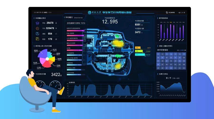 針對分析的數(shù)據(jù)提供可視化展示,向校方展示上課情況和系統(tǒng)運(yùn)行情況,各部門獲得各自的服務(wù)內(nèi)容。
