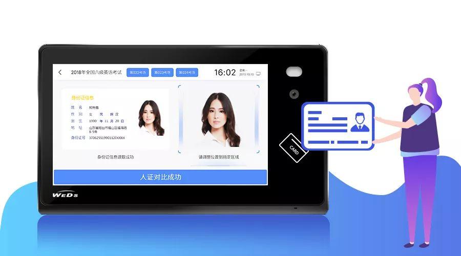 系統(tǒng)以人臉特征和第二代身份證(選配)為主要識別介質(zhì),并將兩者結(jié)合,實(shí)現(xiàn)人證考三方面信息合一驗(yàn)。