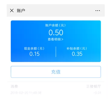 查看個(gè)人當(dāng)日消費(fèi)流水,查看賬戶余額(現(xiàn)金余額和補(bǔ)貼余額),支持消費(fèi)流水查詢
