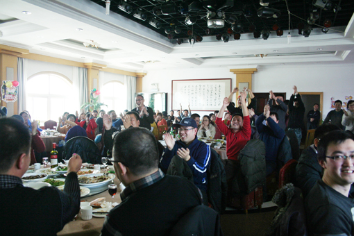 年終總結(jié)大會結(jié)束后,威爾舉行了盛大的員工聯(lián)歡會,員工積極踴躍的展示各種才藝,會場一片歡歌笑語,大家共同舉杯,迎接威爾更加輝煌的明天!