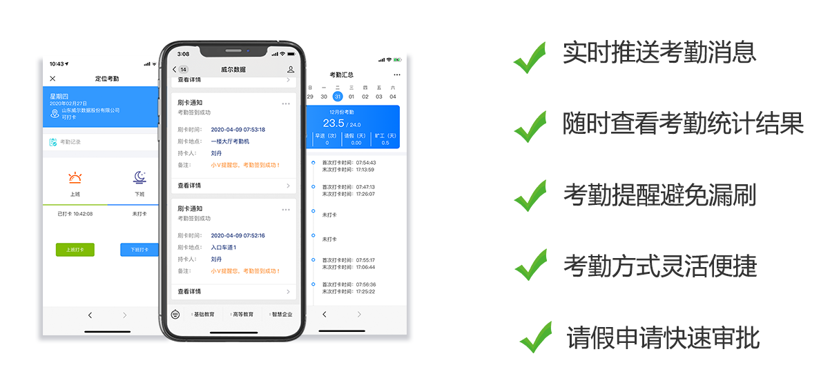 員工考勤記錄實(shí)時(shí)上傳,智慧企業(yè)微信平臺(tái)進(jìn)行考勤信息推送??记谝?guī)則可設(shè)置提醒,避免漏考勤。