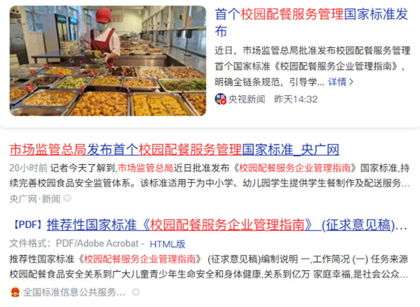 今年7月,國家市場監(jiān)管總局正式發(fā)布《校園配餐服務企業(yè)管理指南》(以下簡稱《指南》),這是我國校園配餐服務領域的首個國家標準。該標準聚焦校園配餐服務過程中的關鍵環(huán)節(jié),在人員配置、原料采購、制作運輸?shù)榷鄠€環(huán)節(jié)提出了具體要求,并將于2025年12月1日起實施。