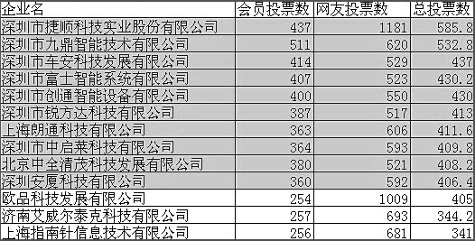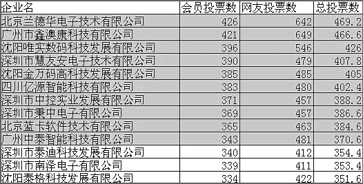 “2010中國一卡通百強企業(yè)之十大門禁企業(yè)” 投票數(shù)據(jù):